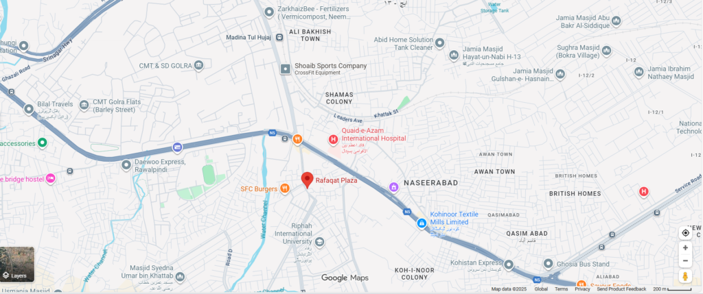 Rafaqat Plaza,1st Floor, Haji Camp Road Near Peshawar Road, Golra Mor, I-14/3, Islamabad, Pakistan.